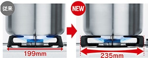 使いやすさと安全性を考えた新ごとく 幅がワイドになった新ごとく。鍋を中心に置きやすく、さらに安定します。 |